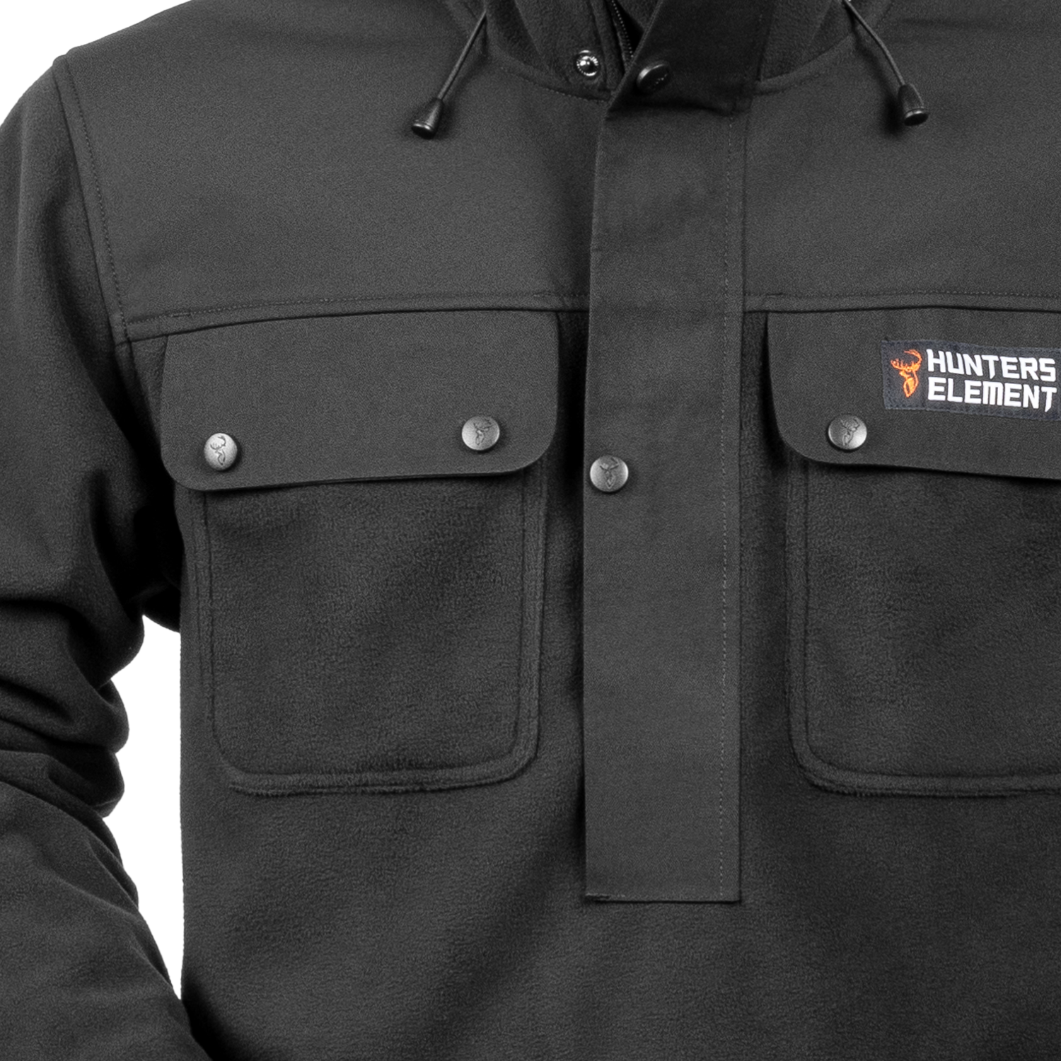 Bush Coat, Half zip: Engineered for smashing through the densest bush, this rugged bush coat is windproof, warm, silent and water resistant.