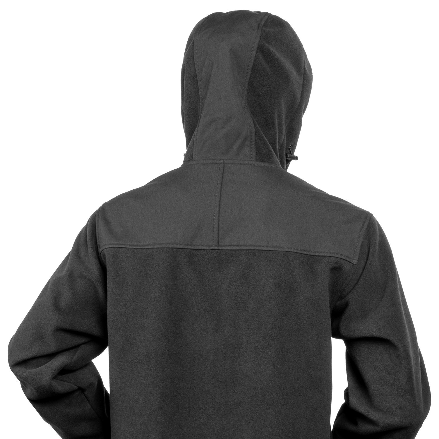 What is it? A long-cut, fully wind blocking 400gsm fleece. Made from 32 recycled plastic bottles, it sports a hydrophobic membrane and dual-layer construction, making it both water resistant and breathable. 500d PU-coated nylon covers the shoulders and hood for even more reinforcement and the half-length zip has a nylon coated, domed storm guard.