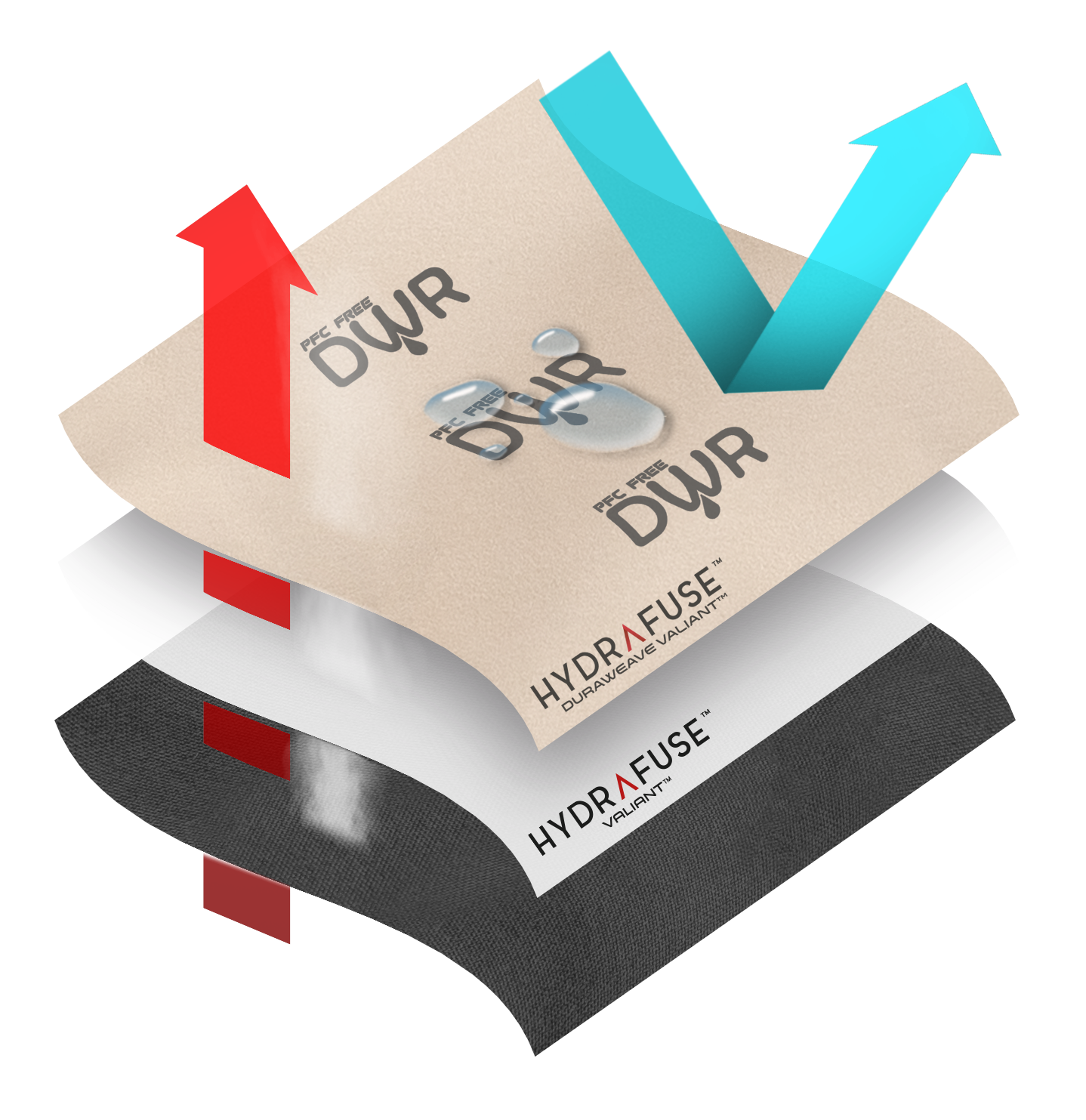• HYDRAFUSE™ DURAWEAVE VALIANT™ fabric is incredibly durable, waterproof, quiet, packable, and insanely breathable.