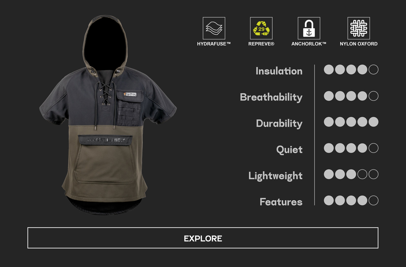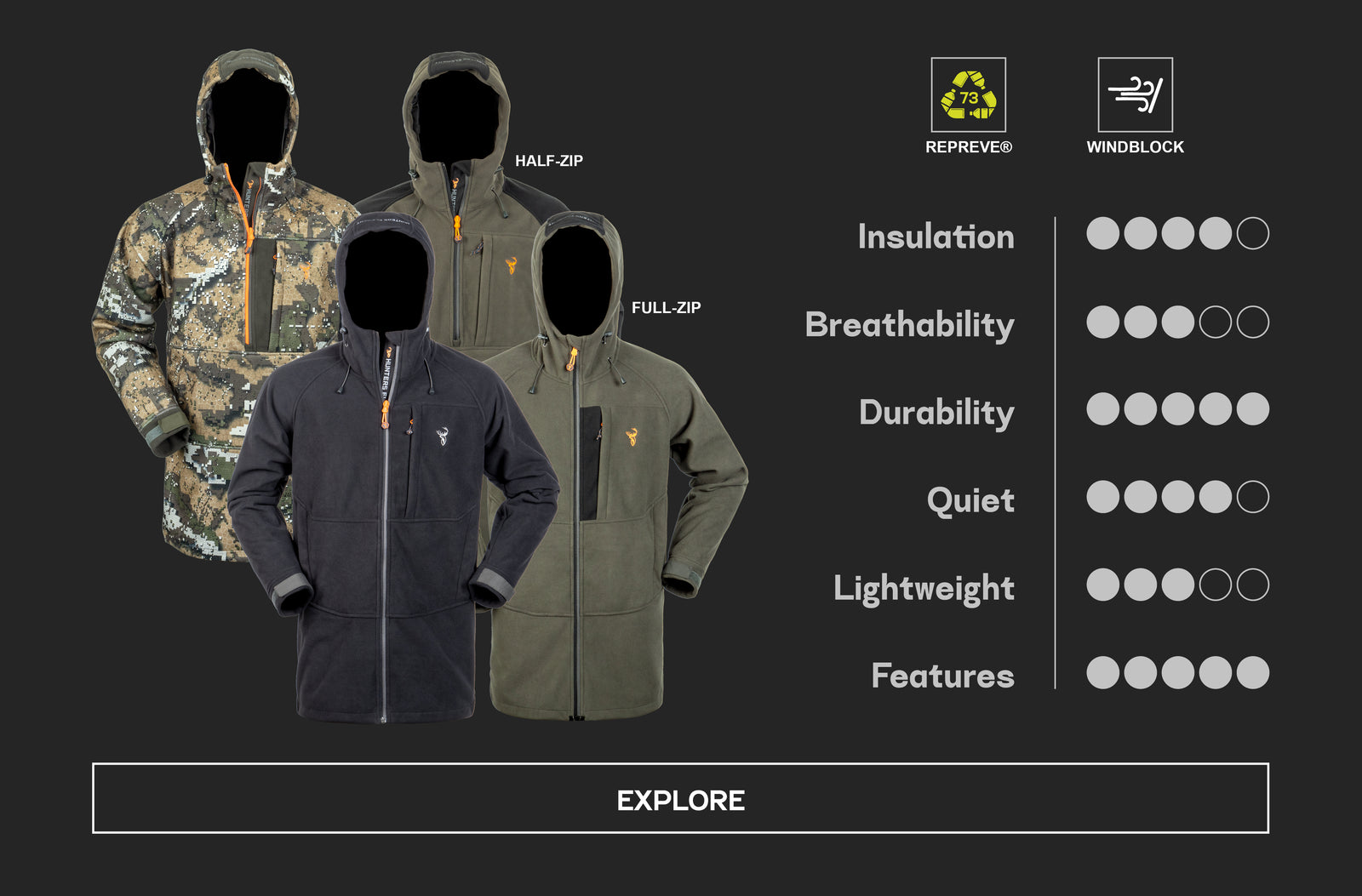 This water and wind-resistant bush jacket will breathe well when things get hot and keep you protected when the crap weather comes through. The three-layer laminated fleece fabric has a silent outer material and heavy-duty construction.