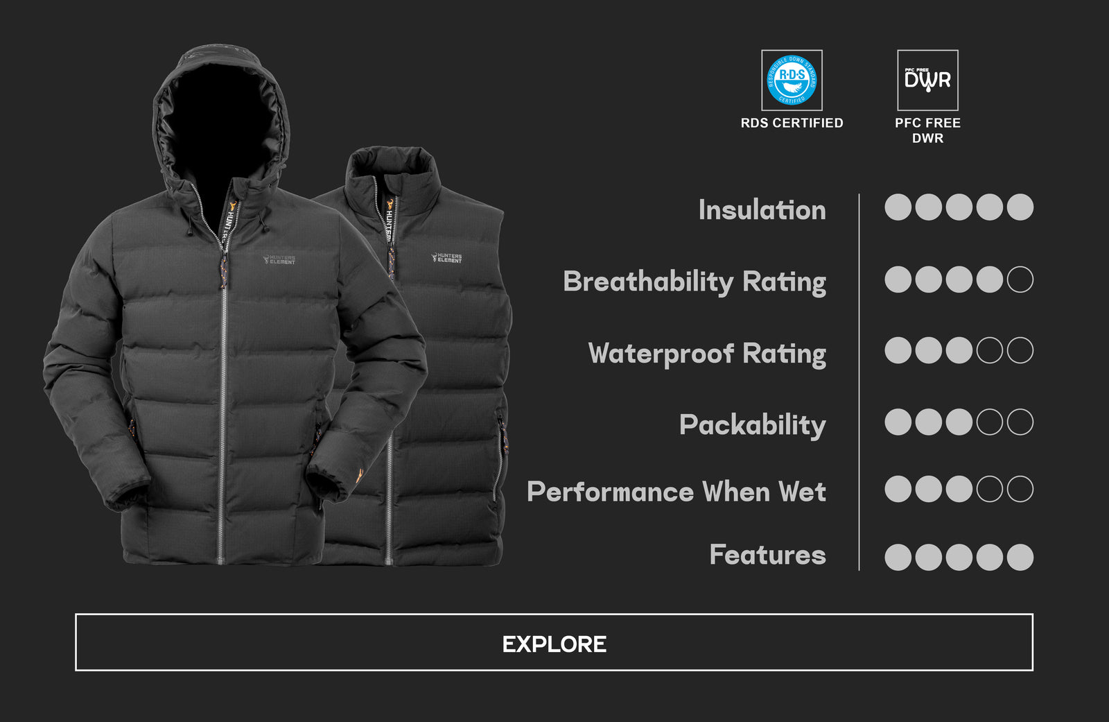 We go to great lengths to ensure that all natural down used in our Hunters Element puffers are RDS certified, and we take care to trace our natural fill all the way back to the farm. You can read more about our fill supply chain here.