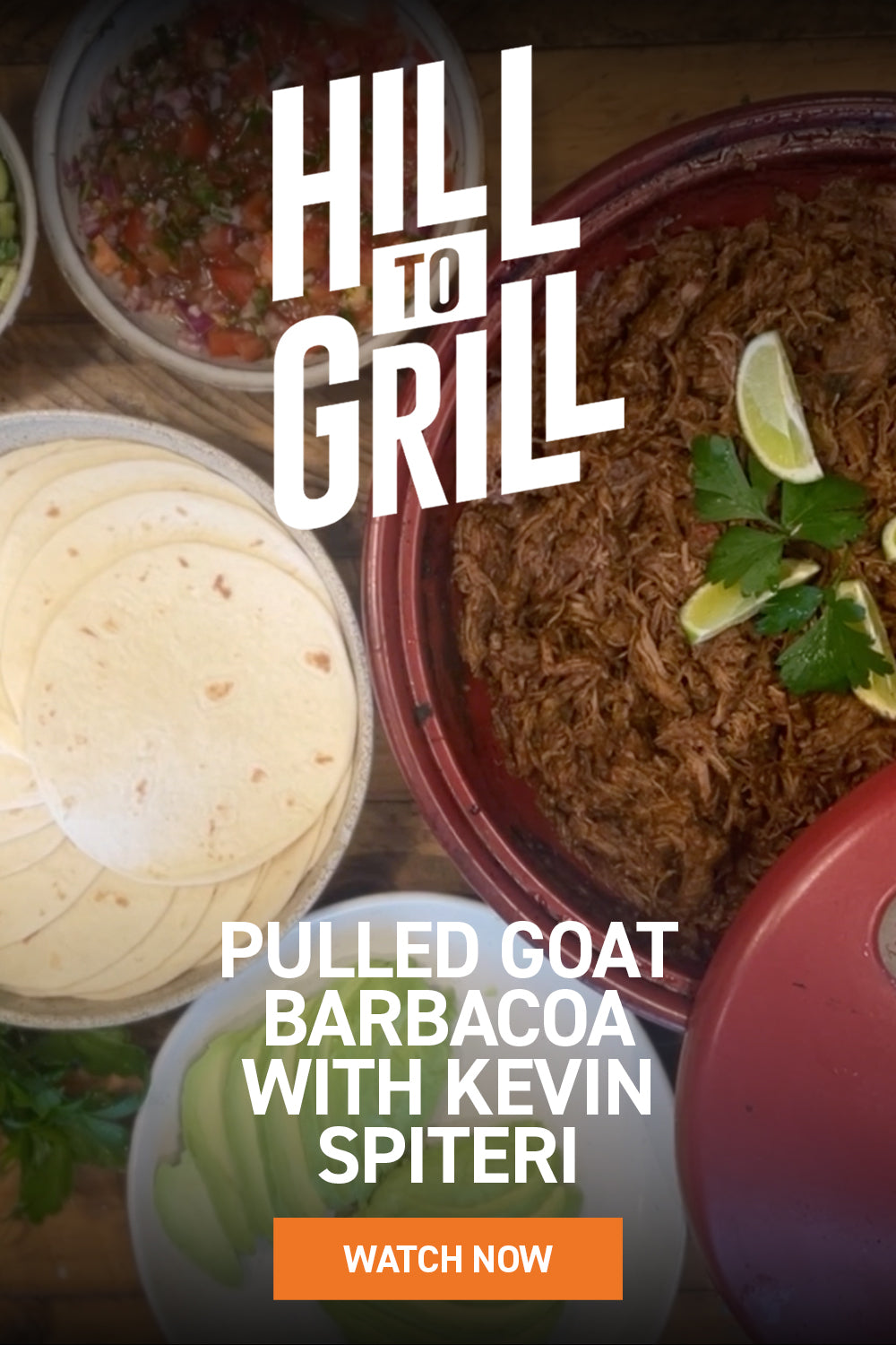 Warm the La Banderita Soft Taco or tortillas and fill them with shredded goat. Top with the salsa, grated cheese, sour cream, and a squeeze of lime.